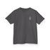 The kids heavy cotton tee is perfect for everyday use. The fabric is 100% cotton for solid colors. Polyester is included for heather-color variants. These fabrics are prime materials for printing. The shoulders have twill tape for improved durability. The collar is curl resistant due to ribbed knitting. There are no seams along the sides.