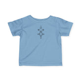 White infant fine jersey tee with geometric print, made of soft combed cotton, durable and comfortable for toddlers.