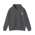 men heavy blend hooded sweatshirt in dark gray with front kangaroo pocket and chest embroidery design