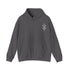 Woman wearing dark brown Heavy Blend™ Hooded Sweatshirt with kangaroo pocket and subtle chest embroidery
